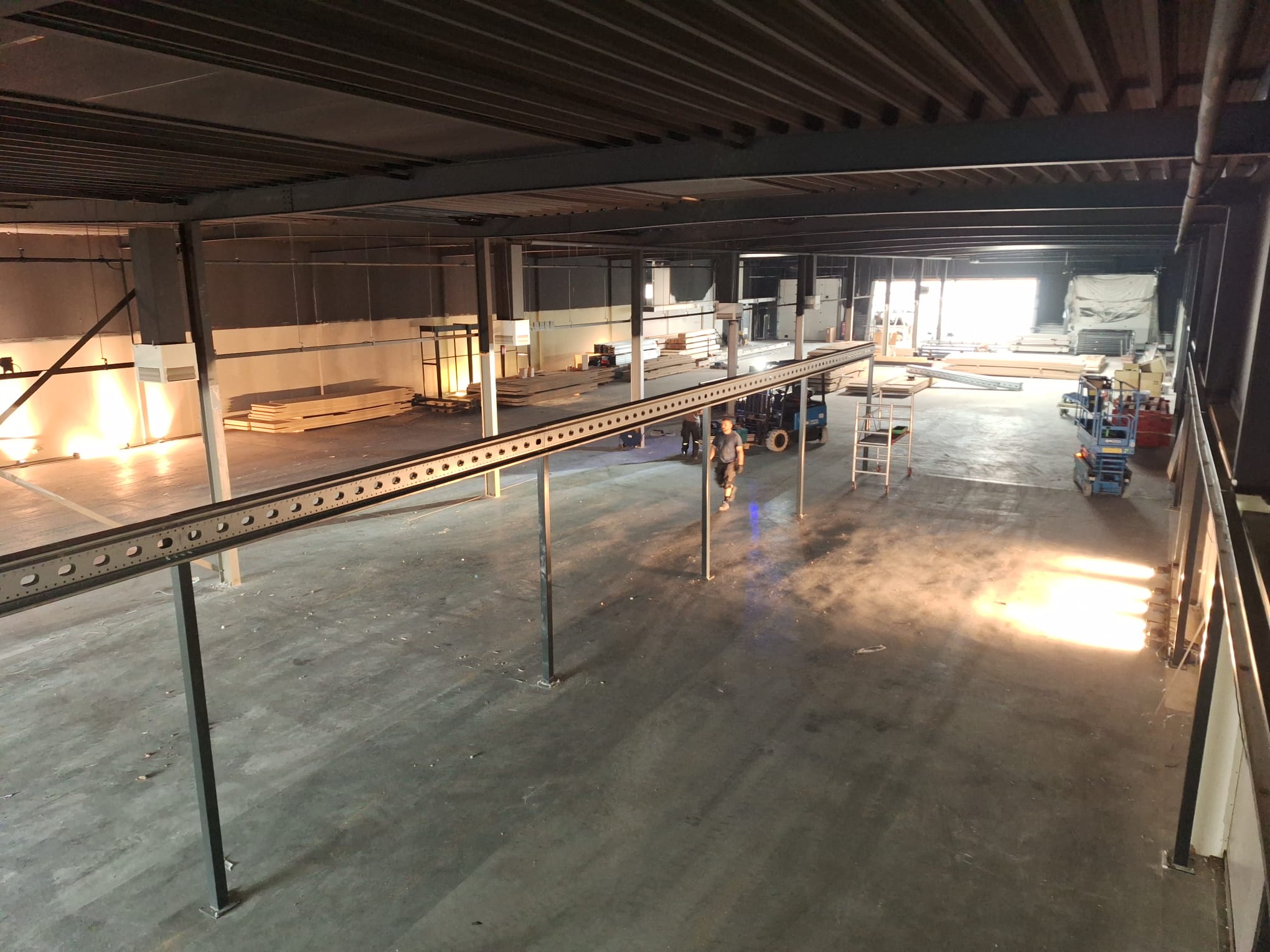 Te koop aangeboden: gebruikte tussenvloer / entresolvloer met warmgewalste hoofdbalken en houten kinderbalken. Dankzij de grote overspanning is deze vloer uitermate geschikt voor het efficiënt benutten van uw bedrijfsruimte met minimale kolomplaatsing.